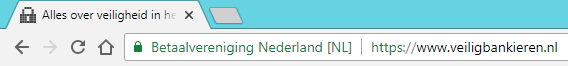 - Als het webadres begint met “https”, controleer dan ook zorgvuldig de rest van het webadres. Twijfelt u over dat webadres, verlaat dan de webpagina en tik zelf het bij u bekende webadres van uw bank in.