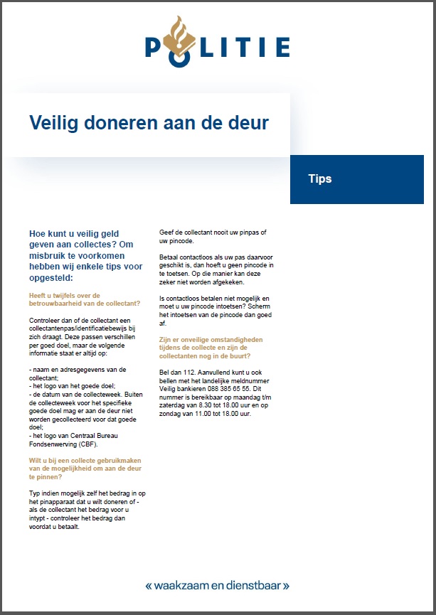 Bovenstaande tips ter voorkoming van misbruik bij donaties aan de deur vind u hier!